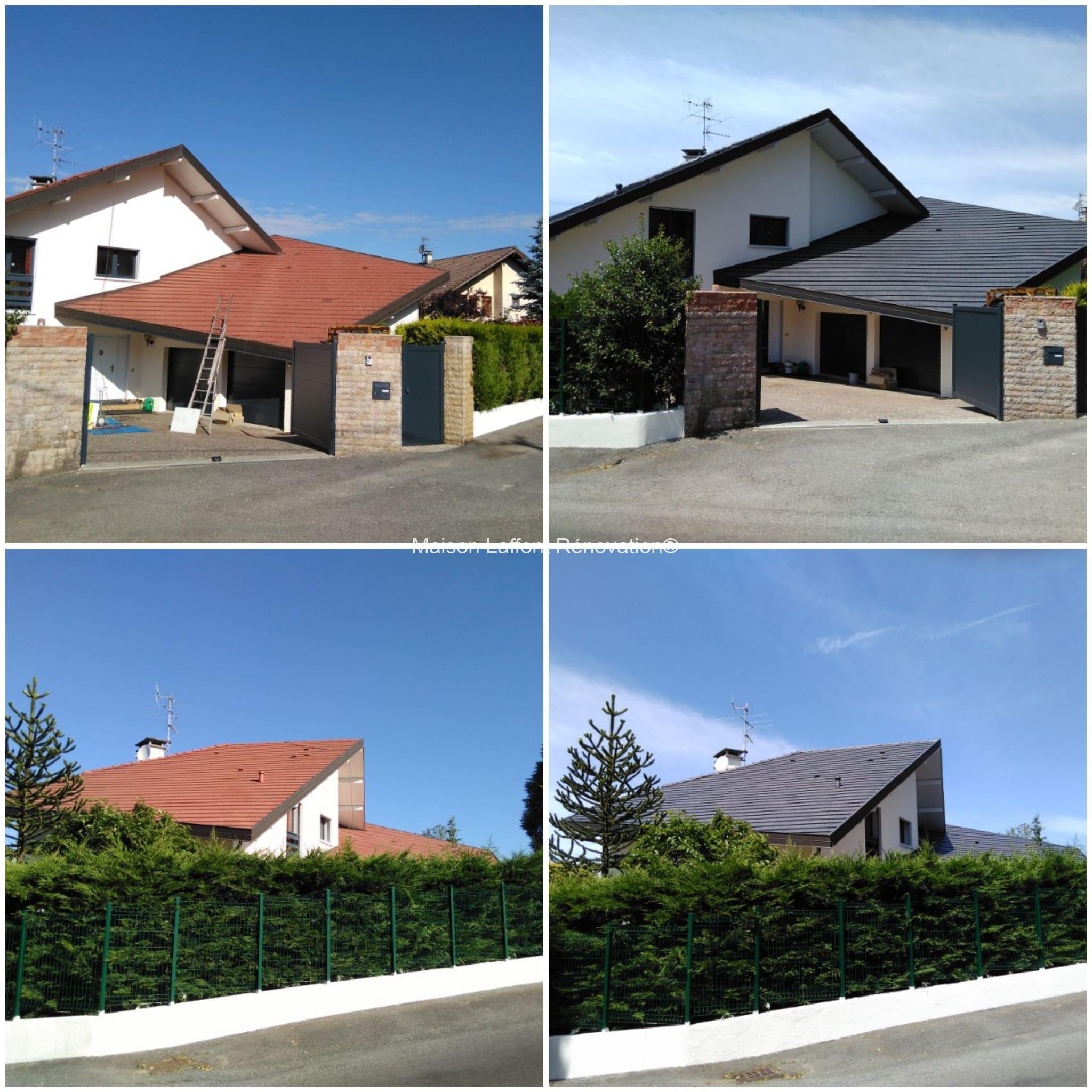 Sur ce chantier, nous avons réalisé la rénovation d’une toiture avec l’application d’un hydrofuge coloré sur un toit en tuiles à Cranves-Sales en Haute-Savoie (74).