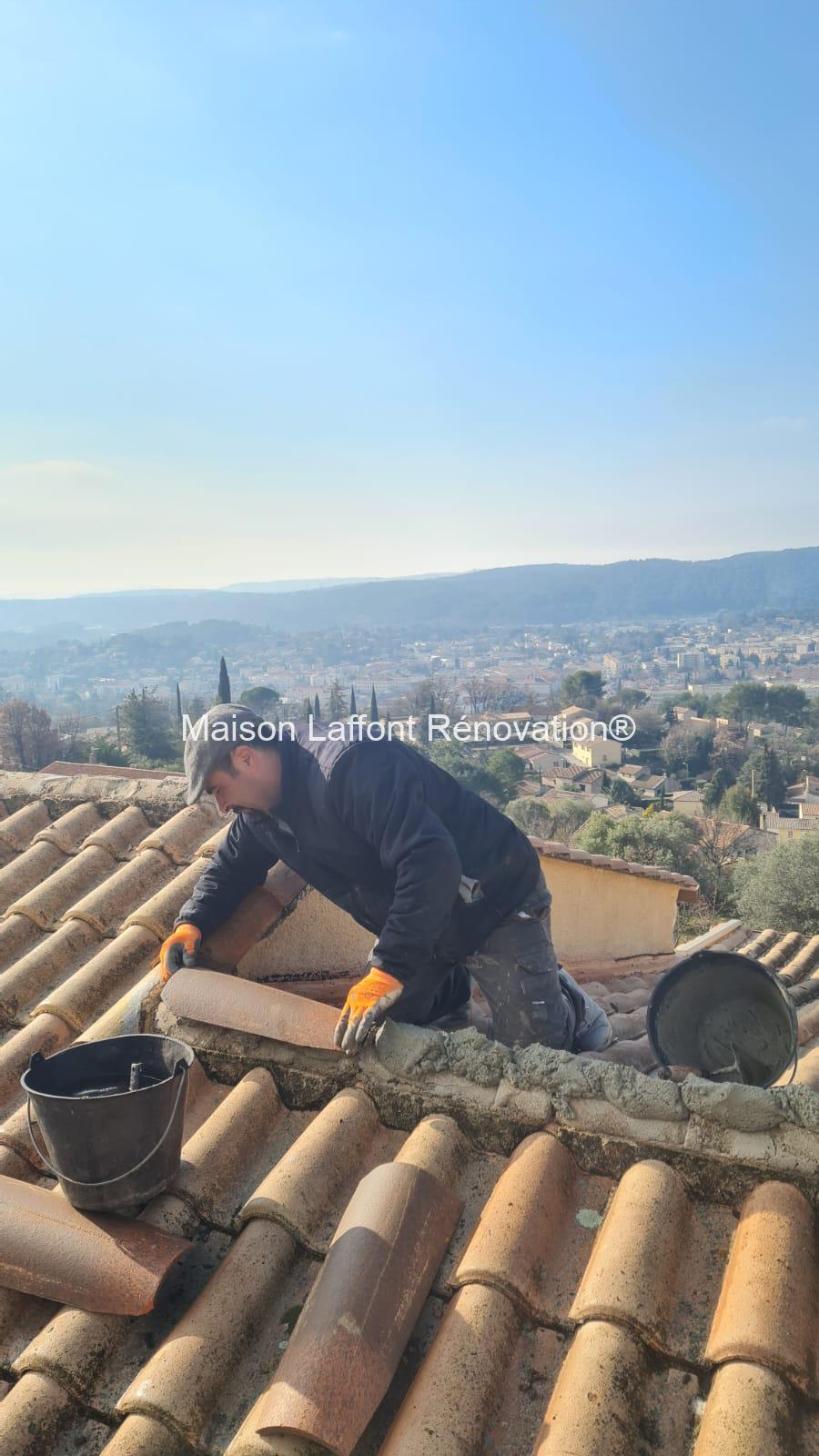 Sur ce chantier, nous avons réalisé la réparation d’un faîtage sur une toiture de maison à Draguignan.